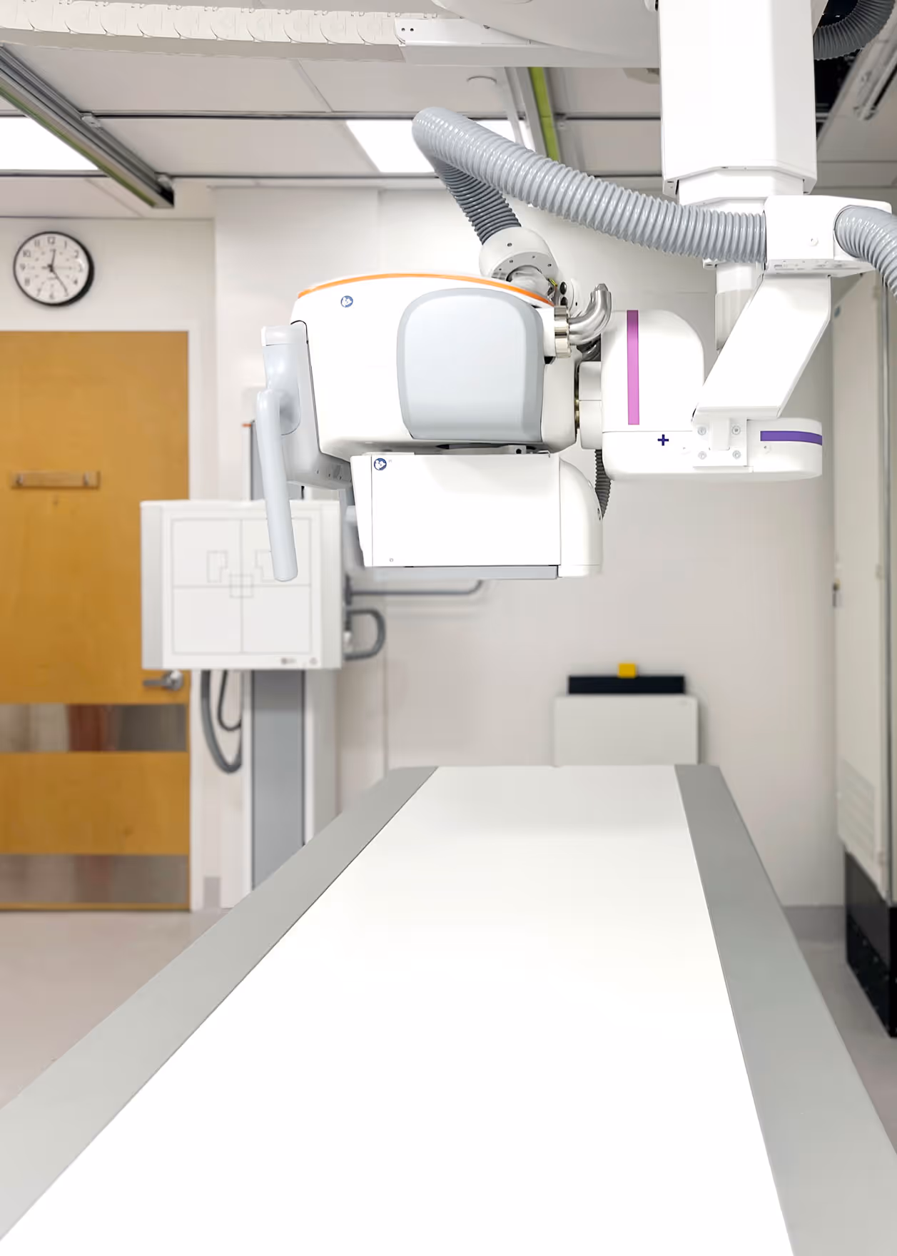 This project supported the replacement of legacy imaging equipment with a new Siemens digital radiography system. The renovation included upgrades to the control booth, specialized millwork, and lead-lined partitions, along with electrical systems for imaging equipment, UPS tie-ins, lighting, and nurse call safety integration. Construction was carefully managed under infection-control protocols, with negative air systems and hard hoarding to protect ongoing hospital operations.